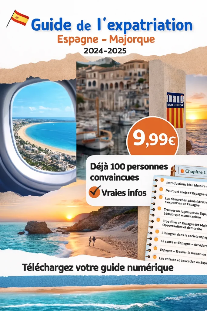 Pour faciliter votre installation en Espagne et à Majorque, j’ai créé un guide d’expatriation digital, disponible à l’achat sur ce site.